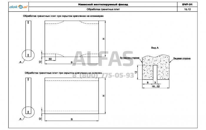 Серия DVF-31 предназначена для крепления гранита со скрытым креплением.