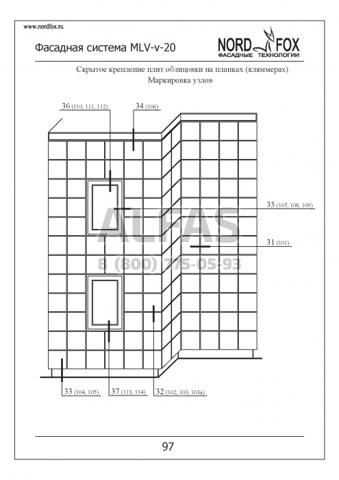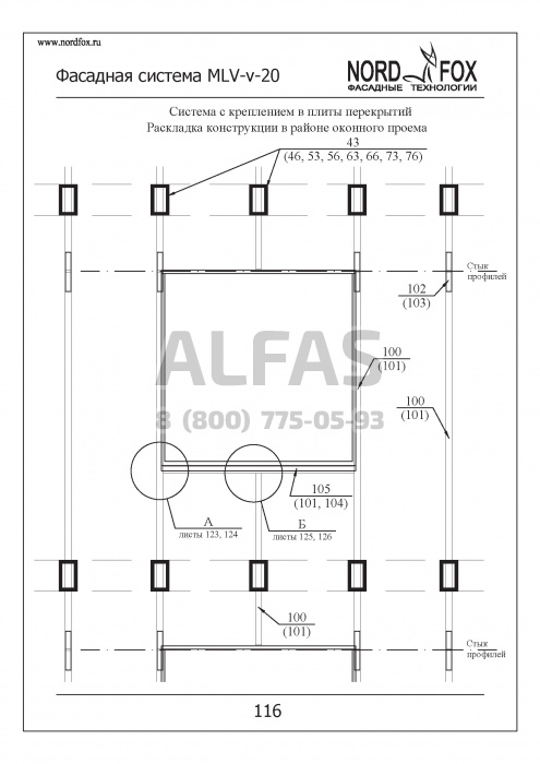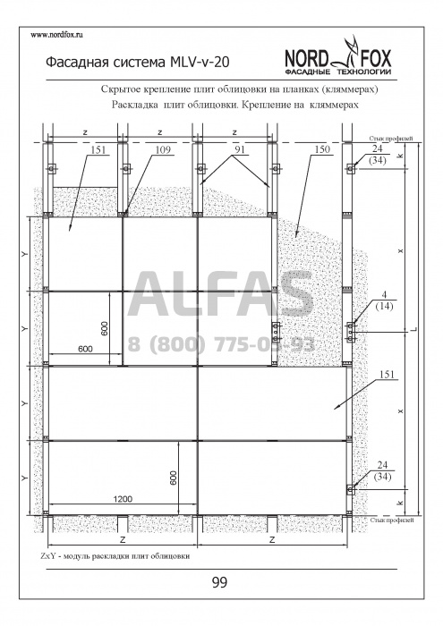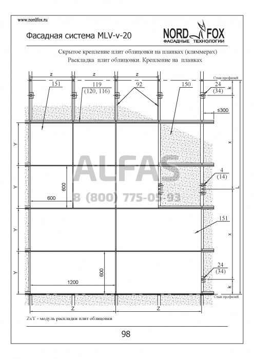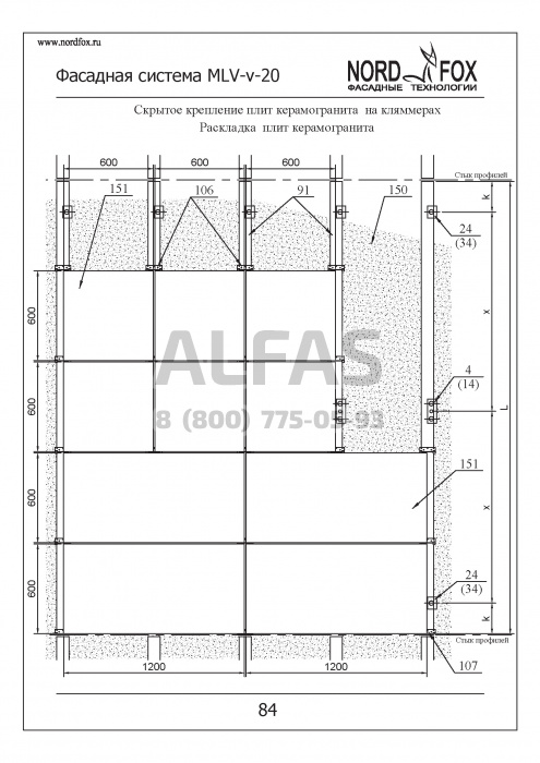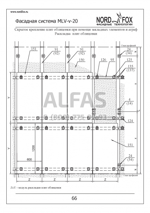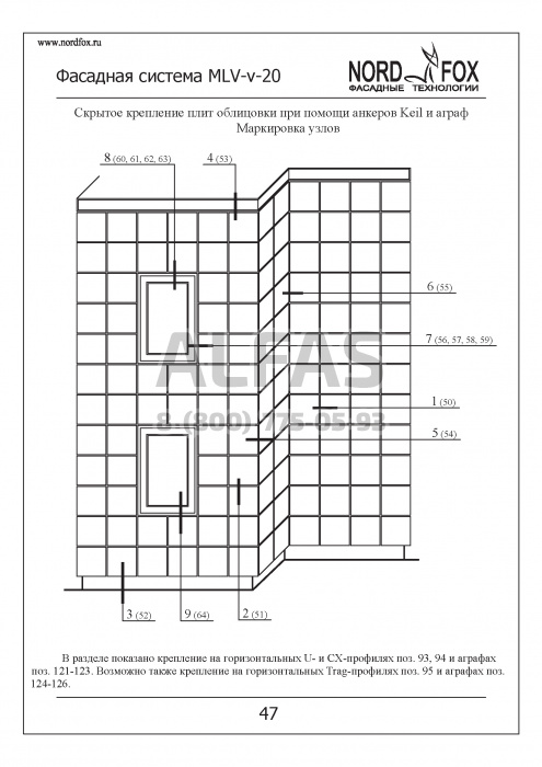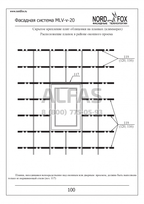 Фасадная система NordFox MLV-v-20 (Усиленный горизонтальный профиль) под Натуральный камень
