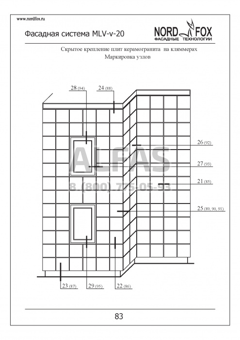 Способ крепления облицовочного материала: скрытое крепление аграфами.