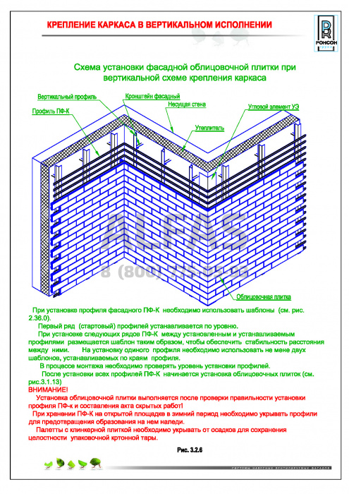 Возможна система крепления как по всей поверхности стены, так и исключительно в межэтажные перекрытия.